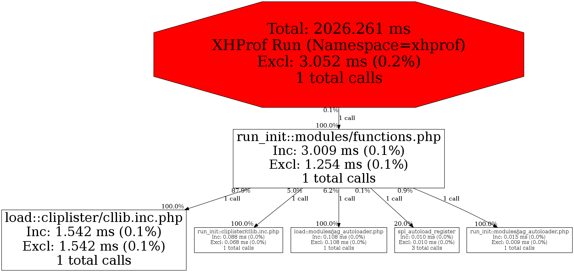 | run_init::modules/functions.php | 1 | 2.3% | 3,009 | 0.1% | 0 | 0.0% | 20,704 | 0.1% | 18,968 | 0.1% |