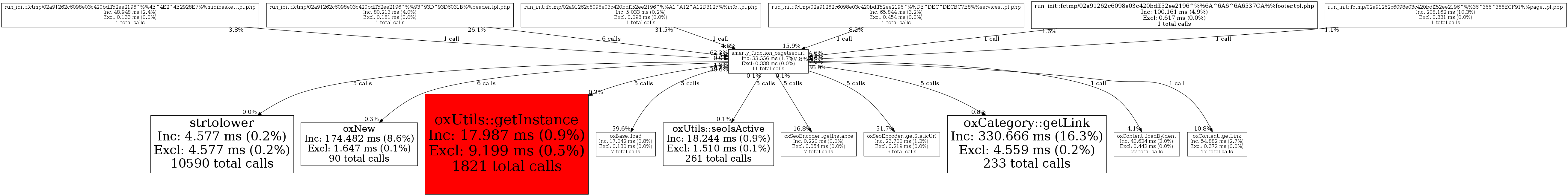 | oxUtils::getInstance | 5 | 11.6% | 28 | 0.1% | 0 | 0.0% | 1,112 | 1.1% | 0 | 0.0% |